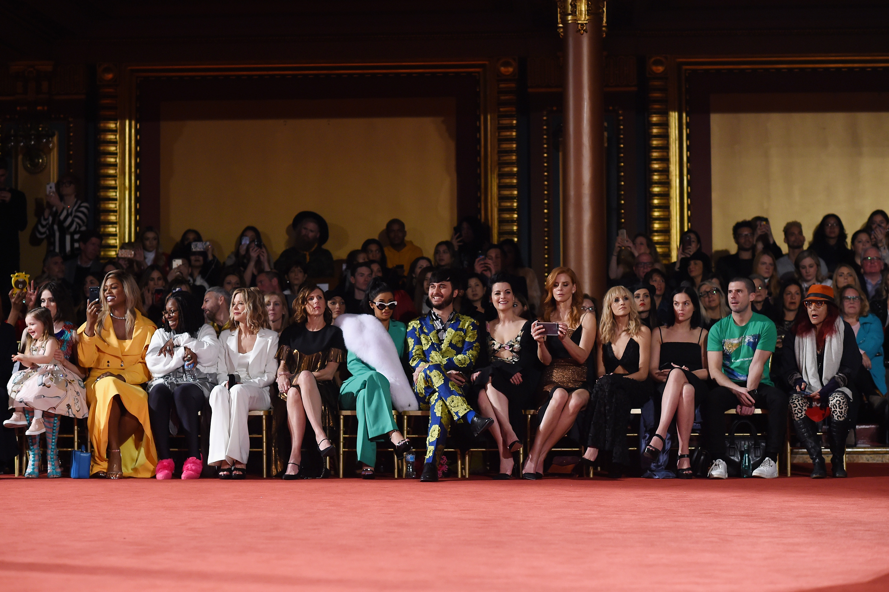 NEW YORK, NY – FEBRUARY 10th: (L-R) Ioni James Conran, Coco Rocha, Laverne Cox, Whoopi Goldberg, Meg Ryan, Molly Shannon, Cardi B, Brad Walsh, Jaimie Alexander, Sarah Rafferty, Nastia Liukin and Patricia Field attend the Christian Siriano fashion show during New York Fashion Week at Grand Lodge on February 10, 2018 in New York City. (Photo by Dimitrios Kambouris/Getty Images)