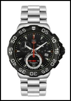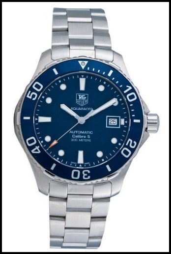 Tag Heuer Men’s Aquaracer: If you are looking for a water resistant watch that is stylish and durable, then look no further. The Aquaracer is one watch from Tag Heuer that has superior construction and a design that suits all purposes. This watch is the prime of luxury, but is also good for everyday usage. The dial is sea blue, and it has a number of silver toned features. It comes in a stainless steel case, with the bezel moving in just one direction. This watch uses the highly accurate Swiss Automatic movement system, ensuring the time is always correct.