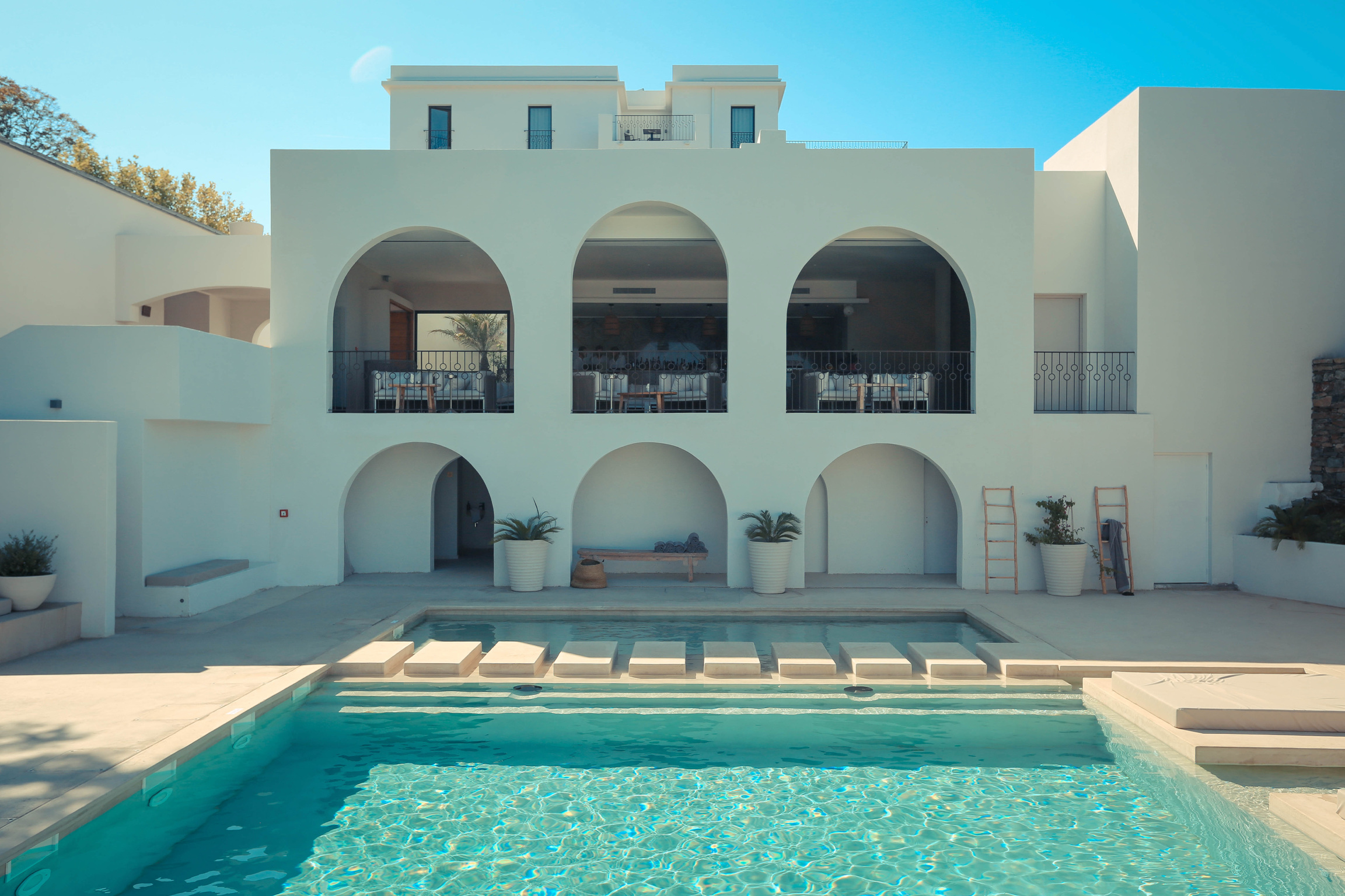 At every glance, Misincu seems to hold a witty balance between standing out in glorious luxury and melting into its surrounding themes of nature. The sleek, simple white walls that make up the buildings, along with the placement of arches and an airy exploitation of space, stress the elements of classical Greek in the Corso-Grecian style that Olympia Zographos, the designer behind Misincu’s makeover, employed in her work. What this strikes in the sightseer’s heart is an emphasis of nature—a simple style of architecture that only corroborates the fine white sand and sparkling waters of the engulfing beach.